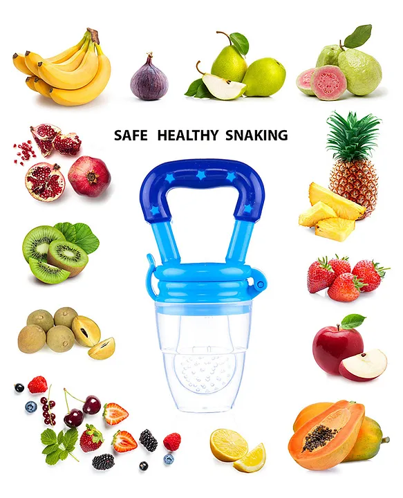 Numum Baby Fruit Feeder With Spoon Feeder And Fruit Teether Finger Brush And Baby Bibs ( 1Pcs Each) (Bibs – Fruit Feeder – Finger Brush – Spoon Feeder – Fruit Teether) – Blue ( Color And Design May Vary)