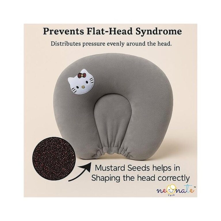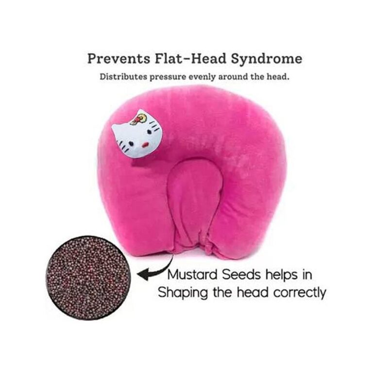 Numum Mustard Seed Pillow For New Born Baby, Ideal For Round Head Shaping Seed Pillow For 0 To 6 Months Babies (Pink Seed Pillow Kitti) ( Color And Design May Vary)