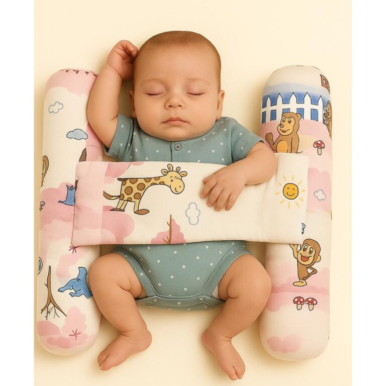 Numum Unisex Infant Toddler Baby Anti Rolling Bolster Pillow, Baby Sleep Positioner Pillow For Newborn (White)(Color And Design May Vary)