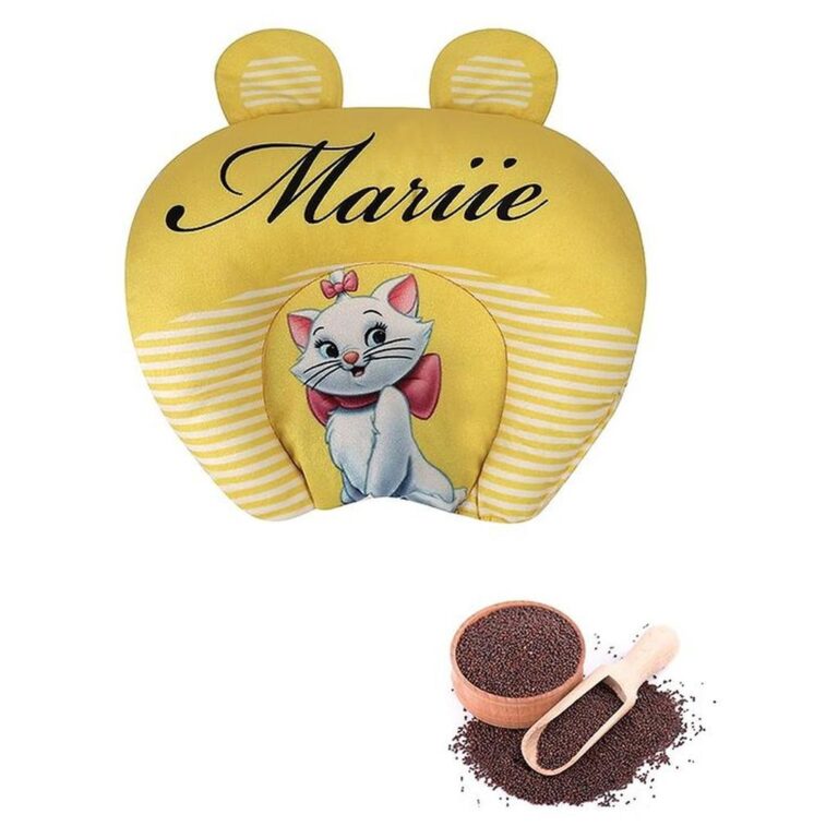 Numum Mustard Seed Pillow For New Born Baby, Ideal For Round Head Shaping Seed Pillow For 0 To 6 Months Babies (Yellow Marie Mustard Seed Pillow) ( Color And Design May Vary)