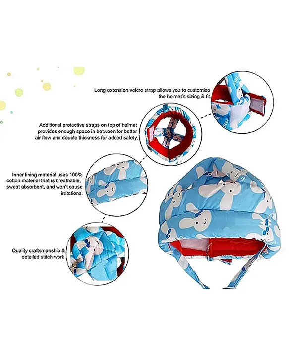 Baby safety Combo of Baby Helmet and Baby Head Protection Cushion Backpack(Blue smiley helmet and Blue Feather Head protector) ( color and design may vary)
