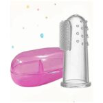 Baby Silicone Soft Bristles Finger Tooth Brush With Tongue Cleaner Back And Travel Protective Case Soft Baby Toothbrush For Babies Oral Hygienic Care – Multicolor
