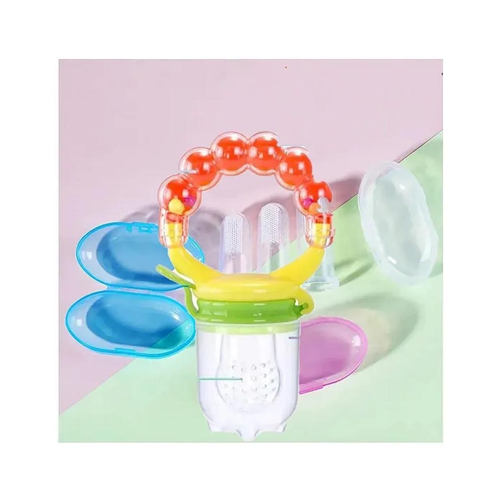 Numum Baby Soft Bristles Finger Toothbrush Having Tongue Cleaner Back With Silicone Baby Food Fruit Vegetable Feeder Baby Teether Baby Musical Rattle Soother Teething Toy For Toddlers Infants Babies Multicolor( Color And Design May Vary)