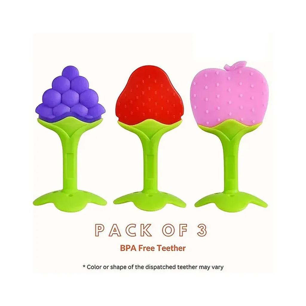 Numum Baby Teether Fruit Shape Set Of 3 Bpa Free – Natural Organic – Freezer Safe Teethers For Newborn – Multicolor ( 3 Premium Fruit Teether Without Outer Case) ( Color And Design May Vary)