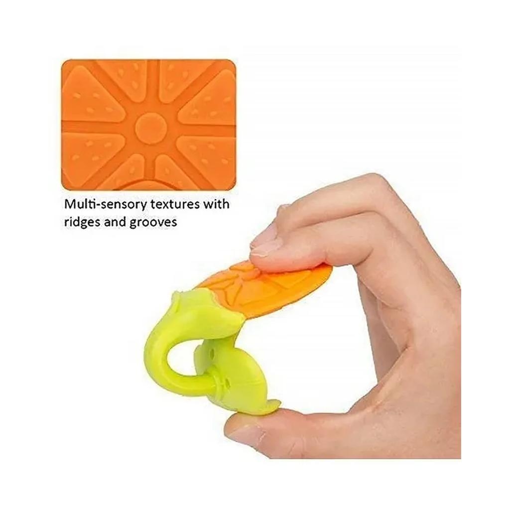 Its multi-textured surface provides the requisite amount of oral stimulation to your baby to enhance gum developments. It is ergonomically designed to get perfect hold. Cute and colorful animal shapes attract & engage the little one. Made of food-grade silicone, this teether is hygienic and toxic-free.