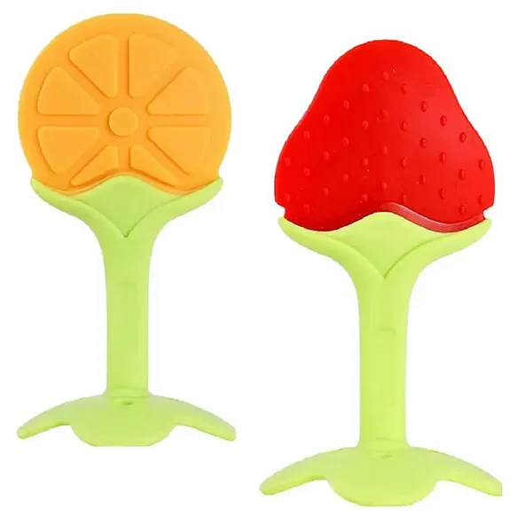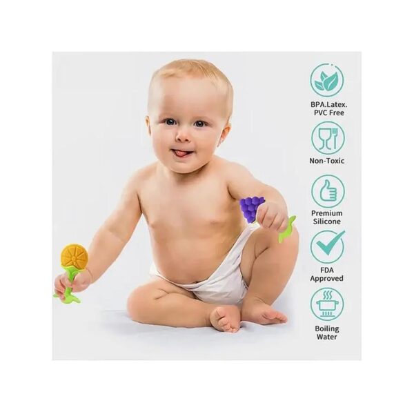 Numum Silicone Bpa Free Natural Organic Freezer Safe Teethers Soft & Textured Pack Of 2 – (Fruit Teether) Multicolor( Color And Design May Vary)