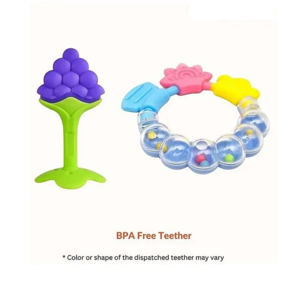 Numum Baby Teether Set Of 2 Soft Silicone Fruit Shape And Ring Teether- Multicolor ( Color And Design May Vary)