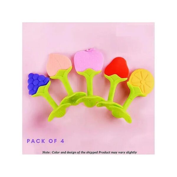 Numum Baby Fruit Teether Pack Of 4 – Silicone Bpa Free Natural Organic Freezer Safe Teethers For Newborn Infant – Soft & Textured – Multicolor ( 4 Fruit Teether Without Outer Case) ( Color And Design May Vary)