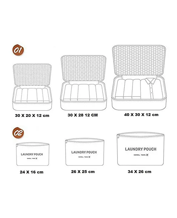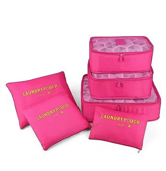 Travel Storage Clothes Packing Cubes Space Savers Bags Cosmetics Underwear Shoes Organizer Pouch Pack of 6 – Multicolor( Color and design may vary)